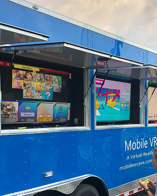The company operates a 32-foot trailer with 4 Climate Controlled Virtual Reality Bays with 4 internal 4K TVs for VR viewing.
